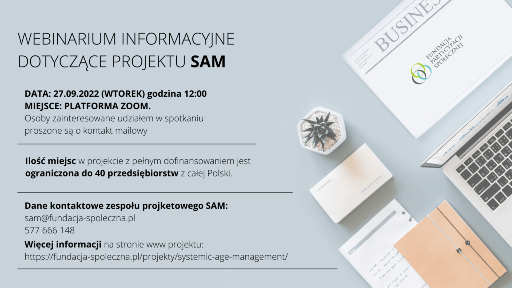 Zaproszenie do udziału w projekcie Systemic Age Management oraz webinarium informacyjnego nt. projektu 27 września
